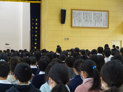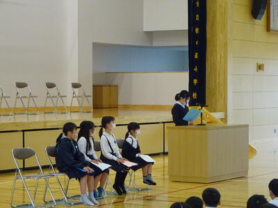 3時間目には、6年生のみの修了式を行いました。各クラス代表の意見発表では、6年間やこの1年間を振り返っての学びや成長を自分の言葉でしっかりと発表してくれ、6年生の子ども達のすごさを感じました。