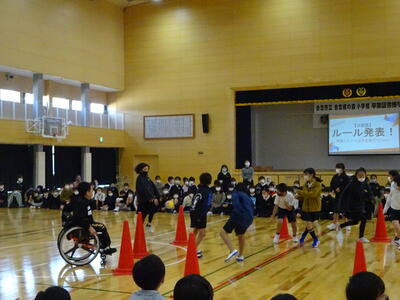 子ども達は、いろいろなルールを考え出していきます。ブッキーからは、「これが正解だというものはない。一人ひとりの考えやルールを考えていくことで「障がい」はとりのぞける」と話がありました。子ども達からも「遊びや学習でもみんなが楽しめるルールを作っていきたい」と、今回の体験からの学びがだされていましました。