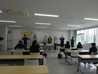 4月から本校に赴任される5名(校長先生を除く)の先生方への事前の説明会(引き継ぎ等)を午後に行いました。説明会は、小・中それぞれで行いましたが、校舎内等の案内は、小・中合同で実施しました。合志楓の森小学校と合志楓の森中学校の即席の「全力おもてなし隊」の先生方が、楽しく?にぎやかに?校舎内の案内をしました。新しく来られる先生方に小・中学校の雰囲気を感じてもらえたのではと思います。