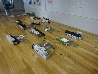 今回は、ブッキーと一緒に「あそぶ」ルールを考え、実際にそれを実践しながら、共生社会について考える体験型のプログラムでした。ブッキーと子ども達が一緒に「おにごっこ」をするにあたり、車いすを利用しているブッキーも、また子ども達も楽しめるようにするためには、どんなルールにしたらいいかを班に分かれて考えていくというものです。ボールや三角ボールなどの道具を使いながら、各班でルールを考え、それを発表して実際に「あそんで」いきます。