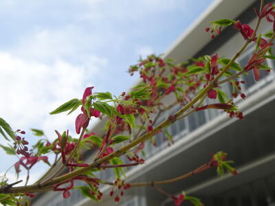 合志楓の森小学校と中学校のシンボルツリーも新しい葉が息吹はじめ、日に日に緑が増してきています。また、新たな年度が始まる景色です。明日から4月、新年度です。
