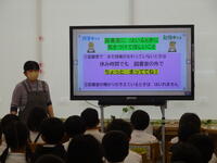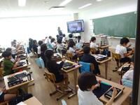 次に4年生は、分度器で角度を測る学習でした。先生が電子黒板を使って説明し、それをしっかり聞いて、問題の角度を測ることができていました。慣れないうちは、分度器の操作が難しいようですね。
