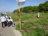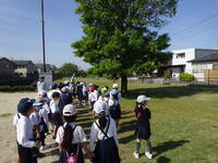 初夏の爽やかな天気のもと、2年生が生活科の学習の一環で校区探検として、陽光台方面に出かけました。道すがら登下校のルール(私有地には入らないなど)について担任の先生からお話し聞きながら陽光台公園をめざしました。途中ヤギに出会ったりなど楽しく歩くことができています。(教頭 米澤)