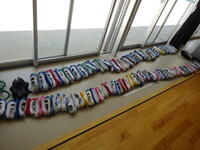 これは、書写の時間によく見られる光景です。書き終わった半紙を全員が机の横とかに広げると足の踏み場がなくなってしまいます。そこで、書き終わった半紙は机の中に入れるように指導をしています。(学級によっては別のやりかたをしているところもありますが) (文責 教頭 米澤)