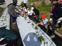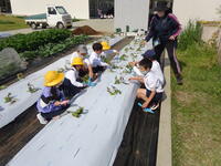 毎年、本校のわかば学級ではみんなでサツマイモを育てています。今年もわかば学級の子ども達がサツマイモの苗植えをしました。1年生も先生と一緒に上手に植えることができました。秋の収穫が楽しみですね。合志楓の森小・中の畑は中学校の渕上校長先生がプロ並みのお世話をされていますが、今回もきれいにマルチをはってくださっていて(ビニールで畑を覆うことです)水やりや草取りの手間を少しでも減らすように準備して下さっています。ありがとうございます。(教頭 米澤)
