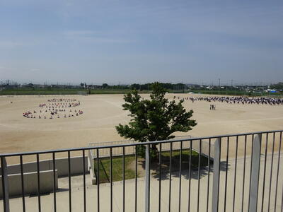 27日(土)の運動会はたくさんの方においで頂きありがとうございました。さて、運動会も終わった週明けの月曜日ですが運動場では1年生がかけっこ?をしています。実は今週から学校ではスポーツテストの実施期間に入っています。そこで1年生は運動場で50メートル走の計測をし、2年生は体育館で「シャトルラン」の計測を行っています。今週は蒸し暑い毎日が続きそうですが熱中症に気をつけながらスポーツテストも頑張りたいと思います。(教頭 米澤)