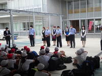 いよいよ今日から6年生は修学旅行です。まず学校に集合の後出発式がありました。校長先生のお話しに続いて添乗員さんや運転手さん・ガイドさん・カメラマンさんなどの紹介がありました。2日間充実した修学旅行になるといいですね(教頭 米澤)