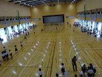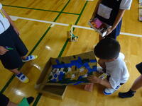 生活科の学習で2年生が「おもちゃづくり」をしました。今日は1年生を招待していっしょに完成したおもちゃで遊びました。ヨーヨーやヨット車などいろんな種類のおもちゃのブースがが体育館いっぱいに設けられ1年生がそれぞれ興味のあるブースに行って楽しんでいました。今の2年生も去年は招待される側だったのに今回は1年生に教えてあげる側になって1年間の成長がうかがえました。1年生はお土産を手に嬉しそうに教室に帰っていきました。2学年250名強で活動しても窮屈にならない本校の体育館の広さはありがたいです。(教頭 米澤)