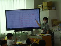 次に、九九を全員で言った後に、列ごと(4,5名)起立させて言わせました(時間があれば様々なバリエーションで言わせるところですが・・・)。まだ、あまり覚えていないようで、緊張感があったようです。