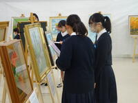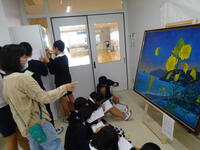 今年度も菊池恵楓園絵画クラブ「金陽会」の作品展が始まりました。本日(27日)は準備の日だったんですが、午前中に終わったので午後から早速小学生の鑑賞が始まりました。今年度は「花」をテーマに様々な作品が展示されています。本日鑑賞した子ども達の多くは「この作品を描いた人は去年も作品があった」と昨年度の作品展の絵を覚えているみたいでした。今週のうちに全学級の子どもが鑑賞し、2日3日は一般公開の予定です。(教頭 米澤)
