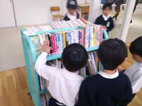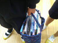 中には、バックいっぱいに本を入れている子もいて、ついつい写真を撮らせてもらいました。(主幹教諭;下山)