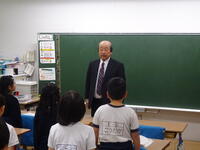 コロナ禍以前は、合志市内の学校を元アナウンサーの岩元先生が回って「ことば教育」が行われていましたが、今年度から復活しました。先日早速3年生に指導していただきましたが、今日は1年生の指導にお見えになりました。クラスごとに発声練習から詩の朗読に取り組みました。みんな口を開けてハキハキと詩の朗読ができるようになったみたいです。(教頭 米澤)