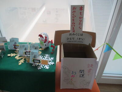 本校の図書室では、「1冊借りると1回おみくじが引ける」コーナーを設けたり、大河ドラマの主人公紫式部にあやかって紫式部コーナーをつくったりと学校司書の堀田先生や担当の関野先生、図書委員会の子供たちが工夫して取り組んでいます。フランスのある作家は、「読書は私達に未知の友人をもたらす」といっています。人との出会いと同じようにすばらしい本との出会いが人生を変えたという人もいます。本が大好きになるように、学校でもあの手この手で工夫して取り組んでいきたいと思います。 (校長 佐藤 政臣)