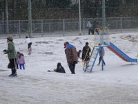 今日は早朝からの雪が運動場を覆い、一面真っ白になりました。何人かの先生方とここまで運動場が真っ白になったのは開校以来初めてかなと話したところでした。登校した子どもたちはそんな雪の中でも元気にあそんでいました。(教頭 米澤)