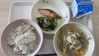 本日、1月24日は学校給食記念日です。日本で最初の学校給食は明治22年に山形の小学校で出された「おにぎり、塩さけ、つけもの」だと言われています。そこで今日の給食メニューは「塩さけ」です。今の子どもたちも塩さけとか食べるのかなと思い子どもたちに聞いたところたくさんの子ども達が「日頃から食べている」そうです。おかわりにもたくさんの子どもが集まっていました。(教頭 米澤)