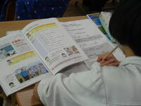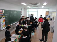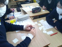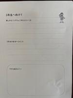 2年生では、新学年に向けての準備をしています。3年生に向けて、「①楽しみなことや挑戦したいこと」、「②3年生の自分へひとこと」を書かせて、次年度への気持ちを高めています。新学年に向かって目標をもち、準備しておくことは大切なことです。理科や社会など新しく習う教科を楽しみにしている子もいました。(校長 佐藤 政臣)