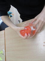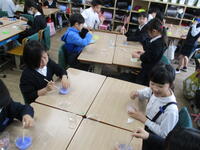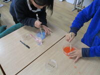 3年生では、下山先生の指導のもと、お楽しみ実験でスライムづくりをしました。