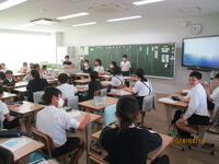 2年生はみんな真剣な様子で話を聞いていました。(主幹教諭;下山)