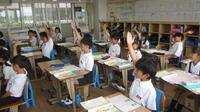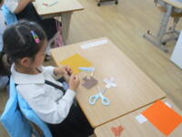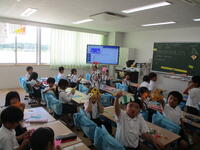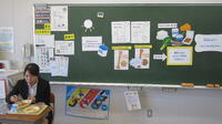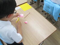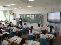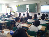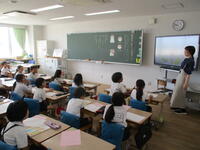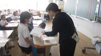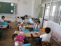 4年生はローマ字の学習。小気味よい声での担任の指導で児童が一生懸命ローマ字を読み取っていました。自分ができたら周りにサポート。自ら考えよりよい行動ができる4年生です。ついでに5年生の学級を覗いたら、棚の上に児童の手作りのかわいらしいボックスが置いてありました。何だろう・・・放課後に担任に聞いてみようと思います。(教頭:上田玲子)