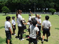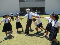 朝昼の寒暖の差がある季節で、体調をこわしている子もいますが、元気に遊びまわっている子もいます。今日も竹とんぼや鬼ごっこをしながら、いろいろな話ができました。「校長先生は、何人きょうだい?」、「私は、5人!」など・・・暑いですが、子どもは元気ですね・・・・。