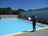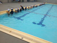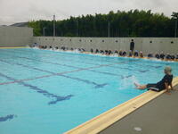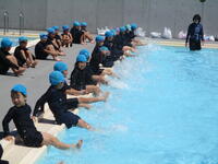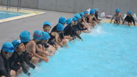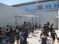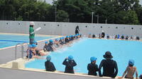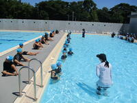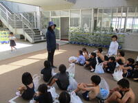 はじめに、プールを使う上での大切なことを話され、バディ等の確認がありました。