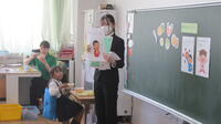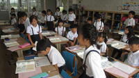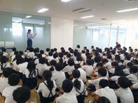 3年生以外は、読書タイムとなっていますが、1年生でも担任の先生が読み聞かせをしていました。