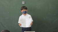 隣の学級では、6年の「学習・掲示委員会」の児童が2年生教室に来ており、「自学コンクール」の説明をしていました。