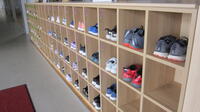 通りすがりの靴箱では、かかと揃えがずいぶん定着してきました。 (2年生の靴箱)