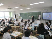 廊下に出ると、5年1組では2組の担任が社会の授業(教科担任)を実施していました。