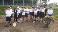 頑固な根っこに大きなスコップで挑む子どもたちや、もくもくと素手でとり続ける子どもたち。本当によく頑張りました。みんなの運動場を自ら考えよりよくしようとした子どもたちに拍手を送ります。