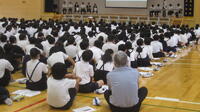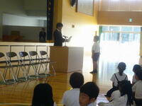 校長先生のお話では、朝から草取りボランティアをしてくれたことや給食の時間にこぼれた汁を黙って拭いてくれる子達の紹介がありました。また、あいさつの大切さについても話されました。