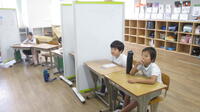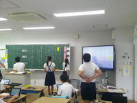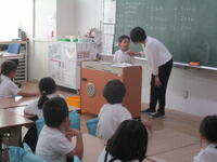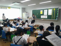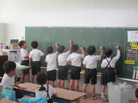 1年生の漢字の書き取りの授業です。「学」、「校」など、1年生には難しい漢字の学習を頑張りました。電子黒板の動画を見て、「空書き」で確認した後、鉛筆を握りました。しっかりと力強く、丁寧に書けていました。