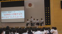 体育委員会からは、体育倉庫のボールの使い方について、雨上がりの運動場の使い方についての発表があり、最後は身体を使ったじゃんけんで楽しい発表ができました。