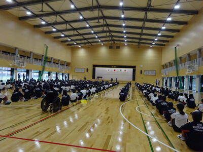 体育館で楓の森中の体育大会(5月21日)結団式が行われていました(詳細は楓の森中HPブログをご覧下さい)。