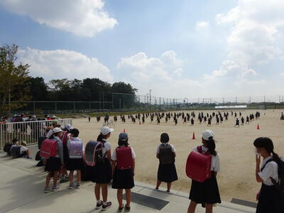 1時間(45分間)の間に、体育館での練習、移動、運動場での練習がスムーズにできている1年生の子ども達の姿を見て感動してしまいました。一人一人の動きはもちろん、1年生としての集団としての動きに成長を感じます。練習場所を明け渡しから移動、待機している2年生もさすがです。