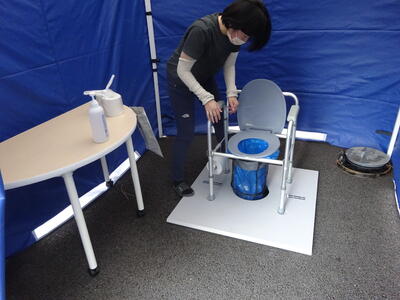 この機会に防災トイレもご覧ください。しばらくは設置し、子ども達にも学習の一環で見学をさせたいと考えています。