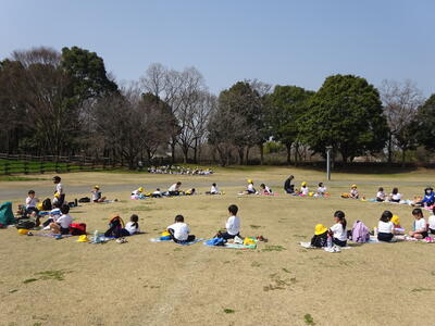カントリーパークでは、学年ごとわかれて輪になったりしてお弁当を食べていました。春の陽気の中、広いパークの中で思いっきり遊んでいました。