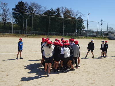 6年生が進めている「卒業プロジェクト」。「ありがとうAチーム(友達)」は、友達への感謝の気持ちを形やイベントにして表すことを計画してきました。今日は、「ありがとうAチーム(友達)」が計画した3クラス合同でのクラスマッチです。