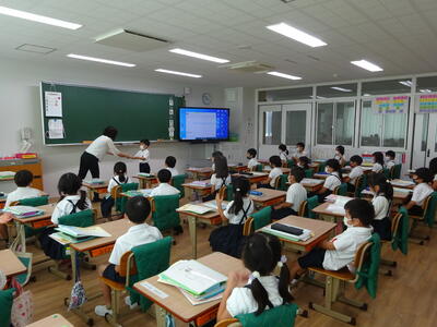 前期最終日の3時間目には、それぞれのクラスで通知表が子どもたちに渡されました。クラスからは拍手が聞こえてきていました。一年生にとっては、初めての通知表を担任の先生から頑張ったことを話されて一人ずつもらっていました。通知表には、前期の子どもたちのがんばりや後期にむけて取り組んでほしいことなど、担任の先生や関わった先生方が丁寧に書いています。ご家庭でも子どもさんと一緒にご覧いただき、こどもたちの頑張りを話題にしていただきたいと思います。