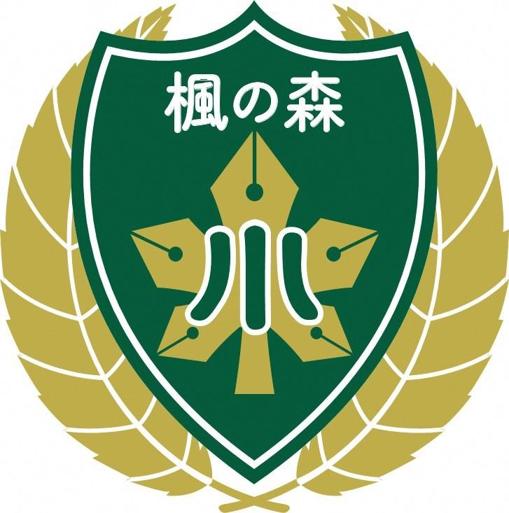 勉学の象徴である万年筆で楓の葉を形づくりました。さらに、人権教育の拠点となってほしいとの願いから、権利を「守る」象徴である盾を組み合わせています。背後には市の木である「クヌギ」の葉をあしらいました。 小学校は「若さ」を表す緑色をベースカラーとしました。