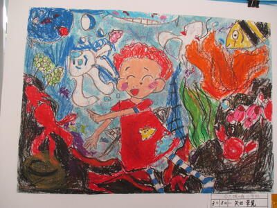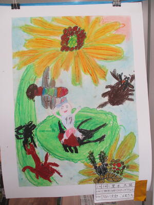 「自由にキャラクターを設定して描きましょう」という学習は、何を描いたらいいのかわからないという子もいます。想像しながらキャラクターを創っていく作業は、様々な能力が必要になります。思い思いに色鉛筆を走らせることができる子もいれば、想像力を発揮できずにいる子もいます。そのような子供たちにもTOMMYさんがやさしくアドバイスしていただいたおかげで全員描くことができました。