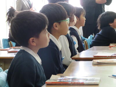 きょうは1月の読み聞かせでした。今月は、「冬」にまつわるお話や、もうすぐやってくる節分にちなんだ「おに」のお話等を聞かせていただきました。みじかい時間でしたが、お話の世界を楽しむことができました。いよいよ、今年度の読み聞かせも残すところあと1回となりました。来月のお話はなんでしょうか?楽しみですね!ボランティアの皆様、来月もどうぞよろしくお願いいたします。(主幹教諭 濱坂 由紀美)