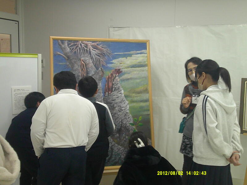 厳重に梱包してある絵を箱から出す作業を中学生の生徒さんがお手伝いしてくれました。藏座さんのレクチャーのもと、大事に大事に絵を運び出す中学生。箱のふたを開けて、絵が見えた瞬間に「わぁ」と声が自然に出る姿を見て、絵には人の心を動かす力があることを改めて感じました。