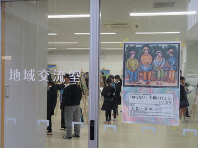 来週2月2日(月)から始まる「菊池恵楓園絵画クラブ金陽会作品展」の作品を搬入しました。キュレーターの藏座さんが950点以上ある作品から選んでくださった20数点を菊池恵楓園から本校へ運びました。