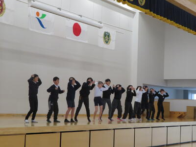 2月6日(金)は、令和8年4月に入学する新入学生の体験入学が行われます。そこで、「小学校は楽しいところだよ」と思ってもらうために、5年生のオープニングの出し物をします。今日は、その練習をしていました(^^)。これで喜んでくれるでしょうか??