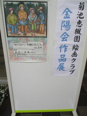 2月7日(土)10:00~15:00、2月8日(日)10:00~14:00の2日間、合志楓の森小中学校の地域交流室で、「菊池恵楓園絵画クラブ金陽会作品展」の一般公開をしています。
