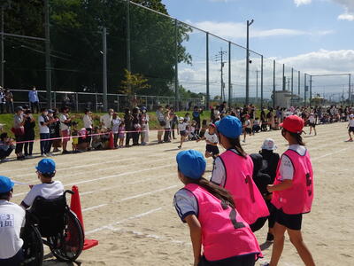 午後からの競技スタートは5年生。1年生から4年生は午前中の種目を終え下校。5年生の競技は、保護者の方と6年生で見守ります。