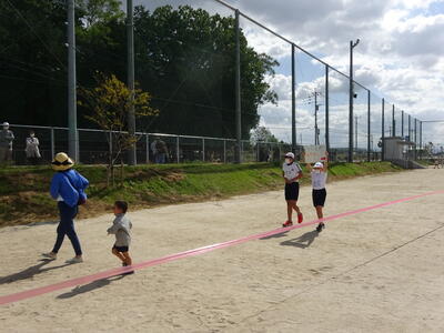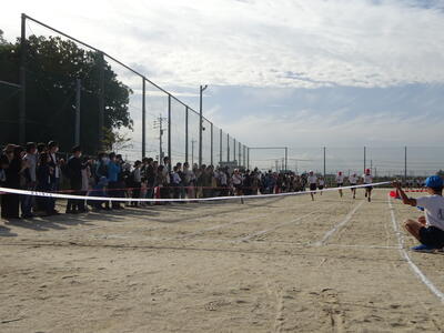 午前中最後は3年生。保護者の方と2年生・6年生、さらに校舎3階のベランダからは4年生も見守る中の競技スタートです。
