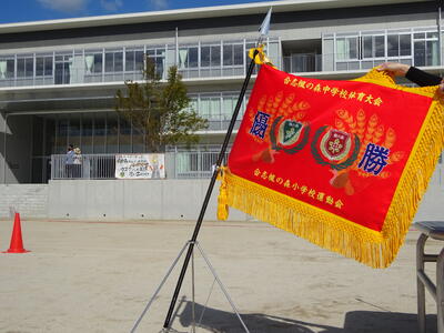最後の得点発表では赤団が初の優勝旗を手にしました。最後に米澤教頭先生から6年生の短い期間での頑張りへの労いとその力量への期待の講評があり運動会の全日程を終わりました。