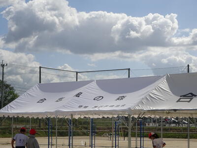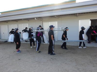 明日は振替休業日ですが、楓の森中は通常通り。10張のうち7張を手際よく移動したりたたんだりしました。道具や誘導ポール等も手分けして短時間で片付け。先生方のチームワークもバッチリ‼︎